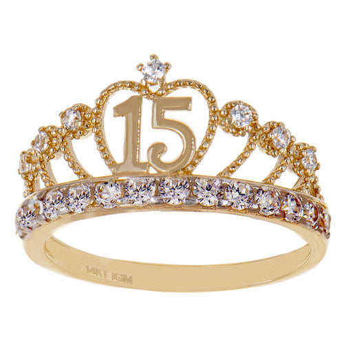 Classic Simple Dainty Heart Ring Cubic Zirconia Yellow Gold 14k -