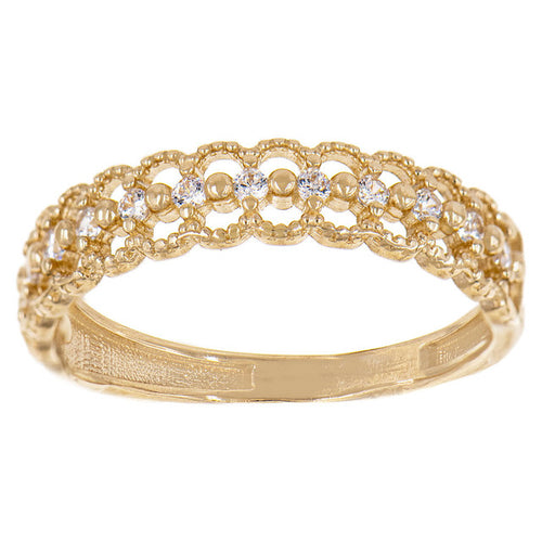Tiara Crown Ring Cubic Zirconia Yellow Gold 14k